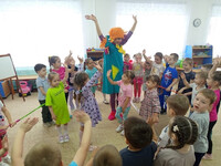 Под руководством Пеппи и Бабы-Яги детишки окунулись в удивительный мир сказочных приключений и развлечений. Вместе они играли, разгадывали загадки, танцевали и соревновались в конкурсах. Веселье царило повсюду. В финале дети подарили Пеппи и Бабе-Яге значительный набор детской литературы (более 120 экземпляров).