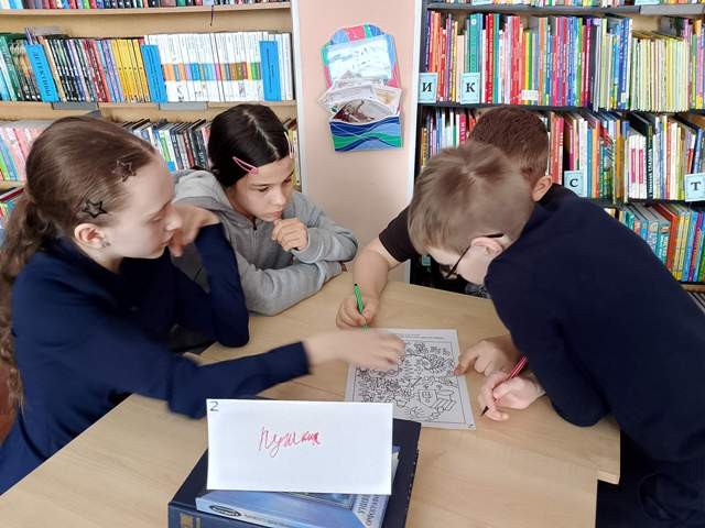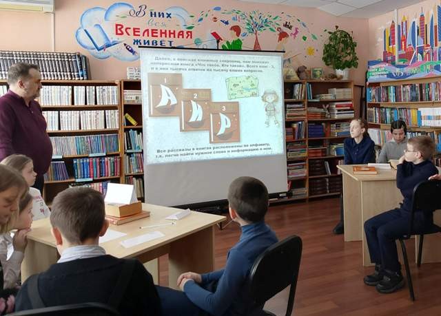 Ребята познакомились с многообразием словарей, представленных на выставке «Наши умные помощники», узнали их назначение и то, как ими пользоваться, а затем смело отправились в экспедицию на поиск книжных сокровищ, которыми являются знания. На пути следования ребят поджидали испытания. В игровой форме с помощью «Толкового словаря русского языка» В.И. Даля, «Орфографического», «Фразеологического» словарей, учащиеся исправляли ошибки в тексте, толковали значение слов, зашифрованных в ребусах.